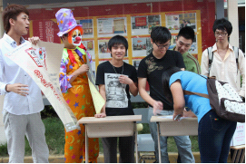 各個(gè)社團(tuán)使出看家本領(lǐng),街舞社的社員現(xiàn)場(chǎng)跳起了街舞,吸引大批新手圍觀。吉他社也不讓步,動(dòng)聽(tīng)的歌聲吸引了不少同學(xué)。而新創(chuàng)辦的投資與理財(cái)社則吸引了大批經(jīng)濟(jì)系的同學(xué)。