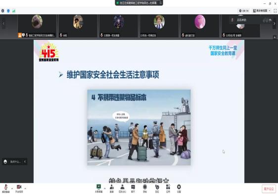 4月15日是第8個(gè)全民國家安全教育日,為將國家安全融入到同學(xué)們的日常生活中,強(qiáng)化同學(xué)們保護(hù)國家安全的意識(shí),智能工程學(xué)院于2023年4月15日在騰訊會(huì)議開展了“千萬師生同上一堂國家安全教育課”主題活動(dòng),學(xué)院黨總支書記余家晶老師出席會(huì)議,智能工程學(xué)院22級新生180余人參加。本次會(huì)議由團(tuán)總支副書記徐凱老師主持。