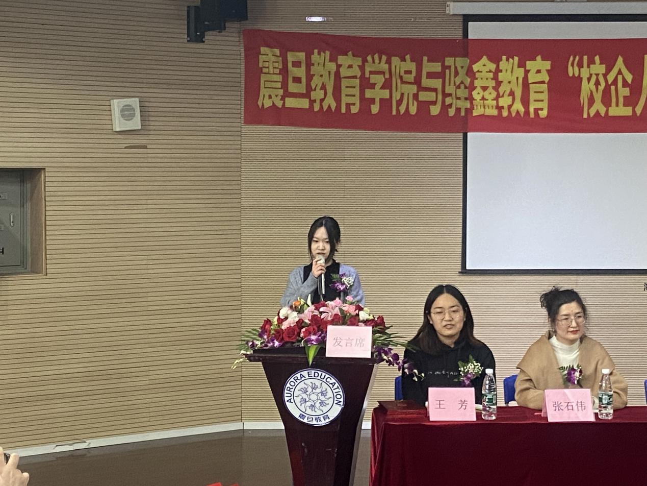 2023年4月24日,上海震旦職業(yè)學院教育學院與驛鑫教育開展了“校企人才戰(zhàn)略合作簽約儀式”暨見習優(yōu)秀學員頒獎儀式。教育學院院長李杰、副院長張石偉、副院長高瞻、黨總支副書記王芳以及驛鑫教育馮瀟冉老師出席本次活動。活動由張石偉主持。
