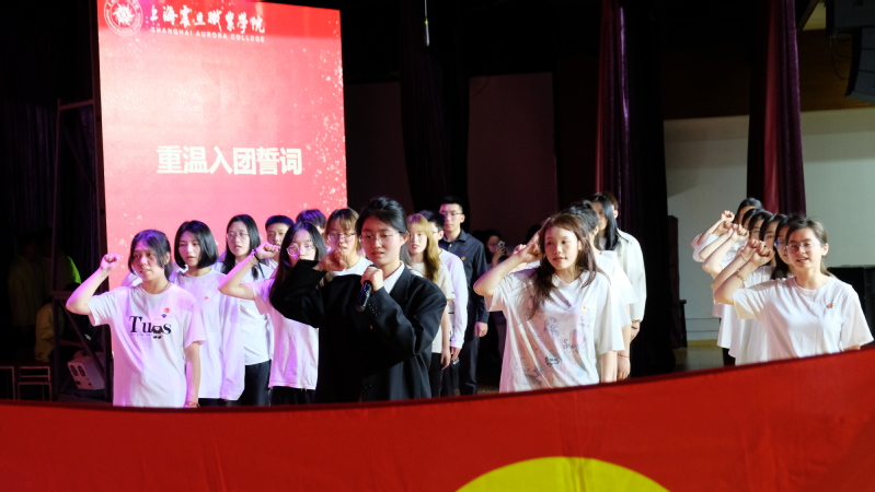 學(xué)生會執(zhí)行主席胡菁菁同學(xué)帶領(lǐng)團(tuán)員代表們重溫入團(tuán)誓詞。一字一句,鏗鏘有力,作為黨的后備軍,將始終以團(tuán)員的身份要求自己,高舉團(tuán)旗跟黨走。