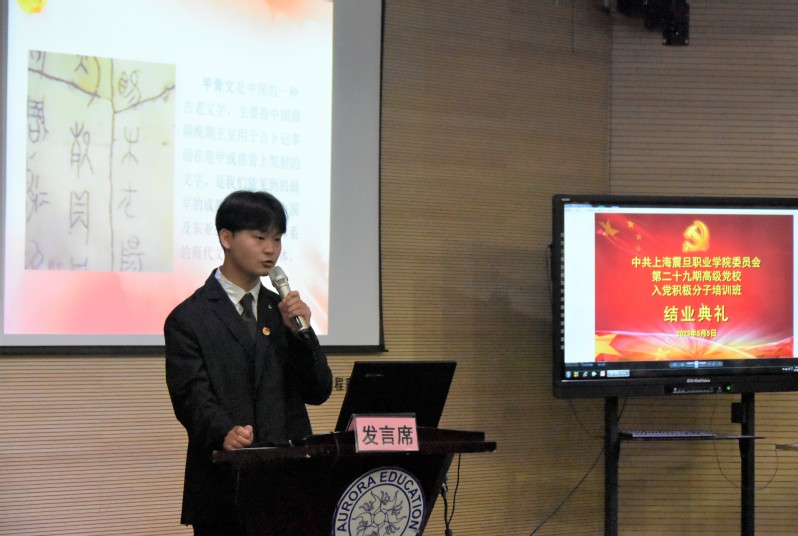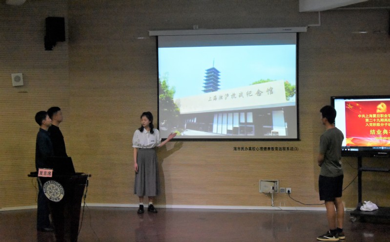 和以往結業(yè)典禮不同,本次活動要求學員們以學院為單位,自己定內容、定形式進行總結與匯報。在臺上,學員們有的不僅播放了PPT,更制作了小視頻;有的為自己“加課”:采訪了身邊的優(yōu)秀共產黨員并在臺上和大家分享感悟;有的集體上臺一一闡述高黨學習給自己帶來的思想變化;有的利用自己的專業(yè)特長,為大家呈現了一個“小品”,生動地講述了自己的入黨動機……通過這樣的匯報,學員們更好地展示了自己的特色和學院的亮點,讓各總支書記和黨委領導們看到了入黨積極分子們的進步。