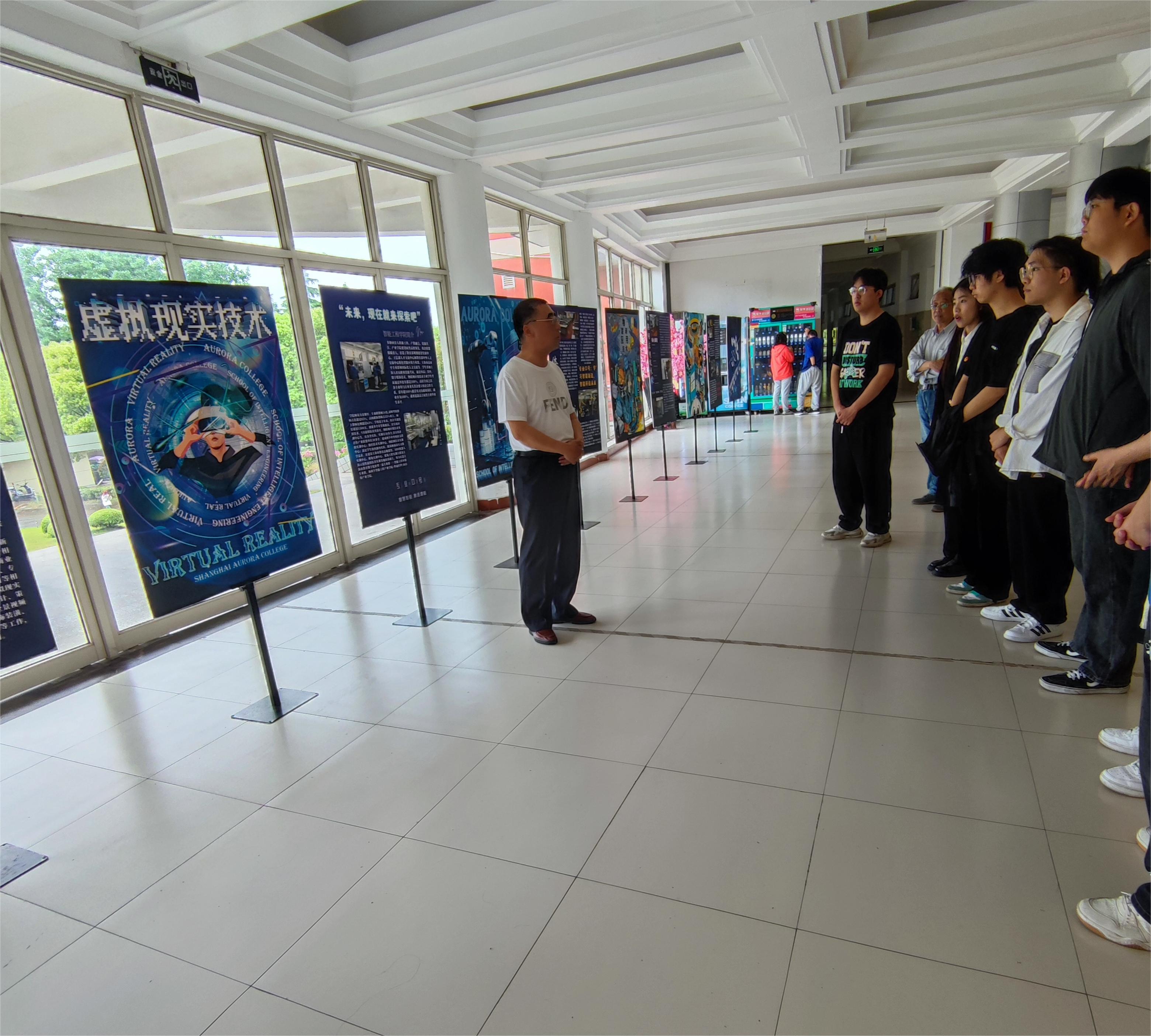 5月5日上午,圖書館館長張健、館長助理李斯聰、智能工程學(xué)院黨總支副書記余家晶及智能工程學(xué)院團(tuán)總支副書記徐凱在智能工程學(xué)院段棋耀同學(xué)的帶領(lǐng)下觀看展覽。