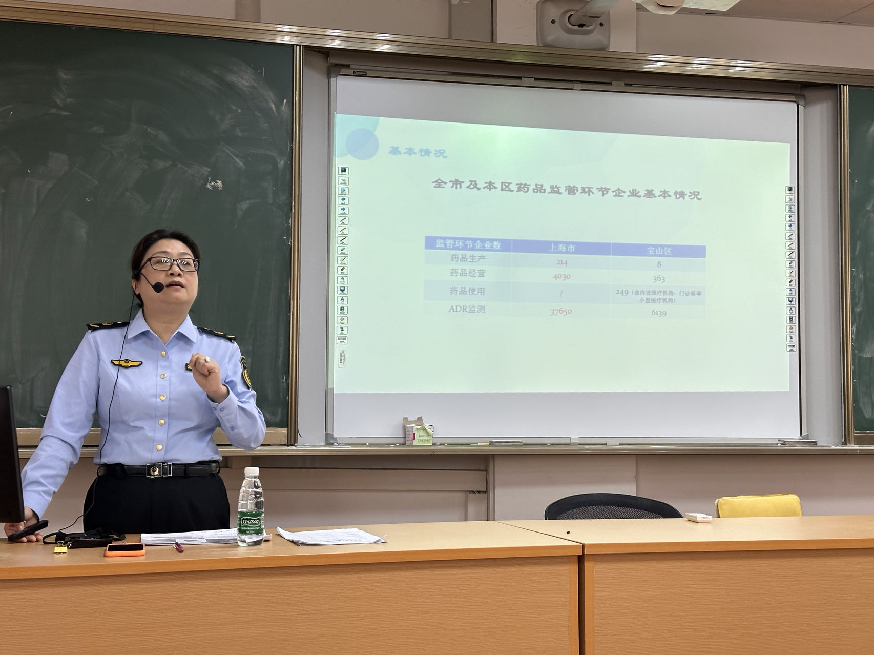 2023年5月22日下午,上海市寶山區(qū)藥品化妝品監(jiān)督管理科科長陸逸雁女士為我校2022級藥學(xué)專業(yè)的同學(xué)開展了關(guān)于藥品上市后監(jiān)管及藥品不良反應(yīng)(ADR)監(jiān)測的交流宣講活動。