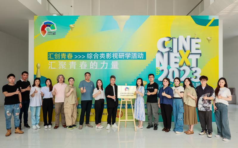在活動的最后,各學(xué)校帶隊老師與片場負(fù)責(zé)人見證了“匯創(chuàng)青春”綜合類影視學(xué)生創(chuàng)作實踐研學(xué)基地掛牌,并一起合影留念。